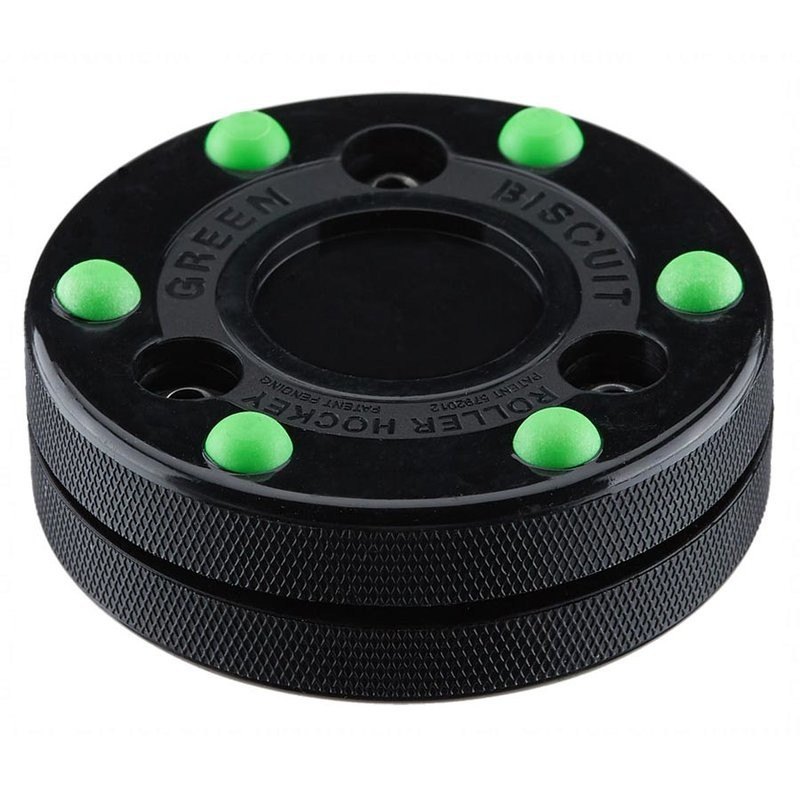 Tréninkový Inline puk Green Biscuit je výbornou příležitostí, jak zlepšit manipulaci s holí a přihrávky i mimo led. Rozměry Green Biscuit Roller Hockey jsou shodné s rozměry klasického puku, na venkovním povrchu se působením nerovností chová stejně jako klasický puk na ledě. Green Biscuit na asfaltu neposkakuje, nepřetáčí se, nekutálí a nezasekává tak jako klasický puk díky své konstrukci – je vyroben ze dvou plastových částí, které jsou drženy odděleně a spojeny třemi šrouby. Díky vzniklé mezeře jsou obě částí mírně pohyblivé a tlumí odrazy.