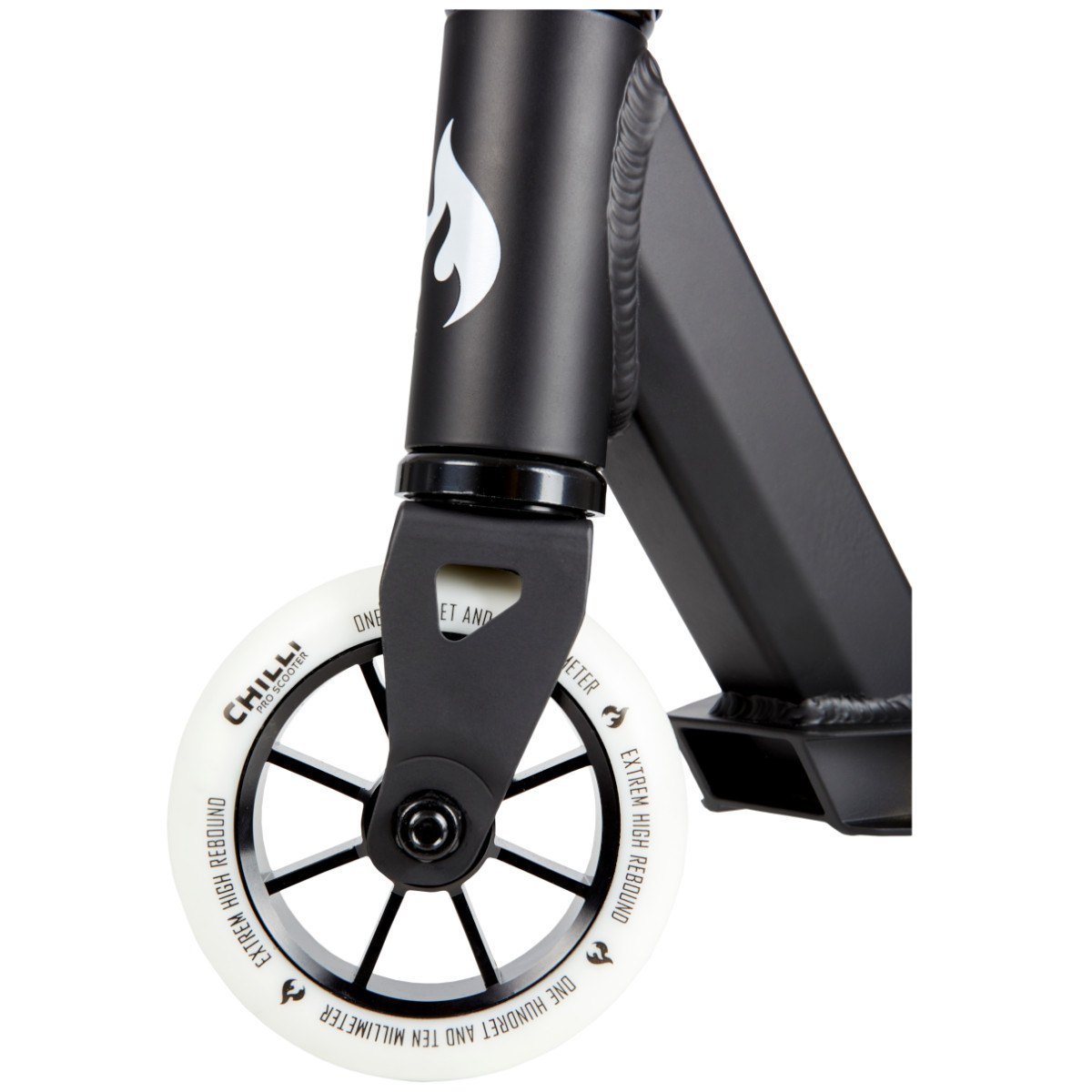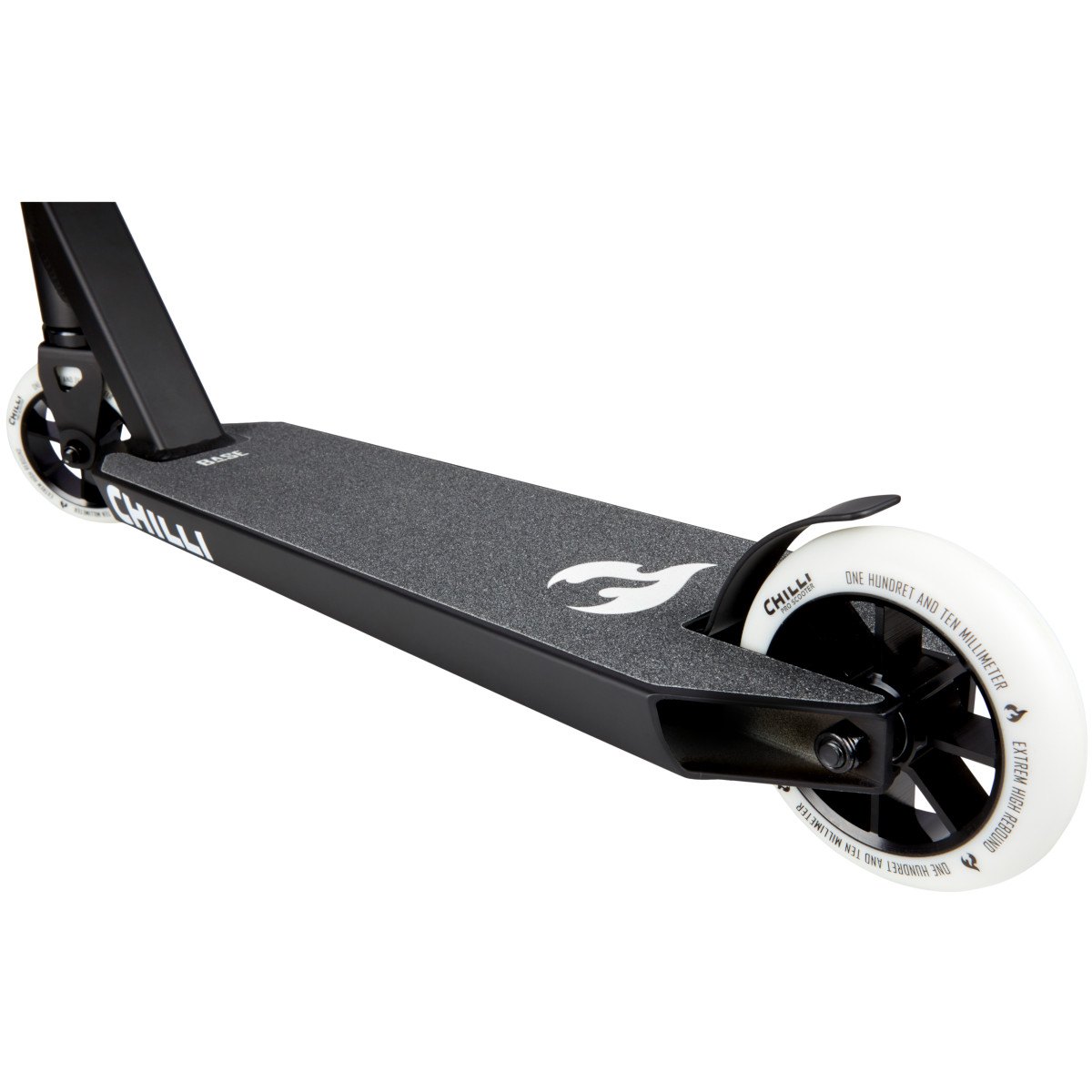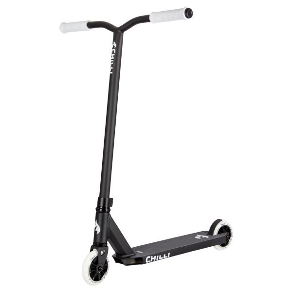 Chilli Base bílá je kvalitní freestyle koloběžka pro začínající jezdce, kteří chtějí zvládnout základy freestylové jízdy ve skateparku nebo na rampě a nechtějí dělat kompromisy v kvalitě koloběžky.