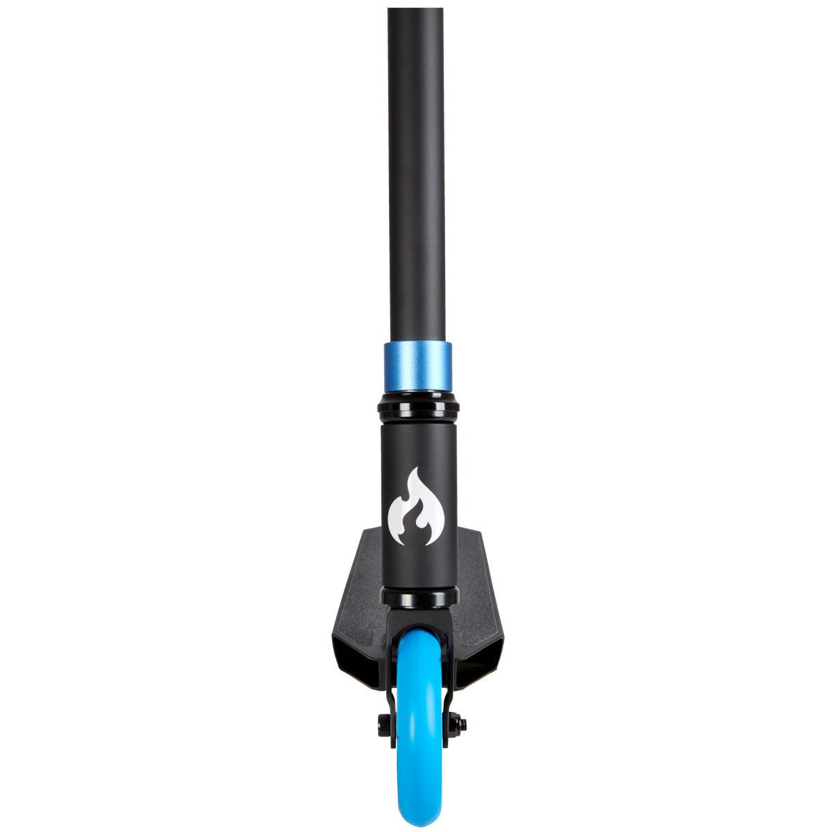 Černá ocelová vidlice krásně zapadá do designu koloběžky.
