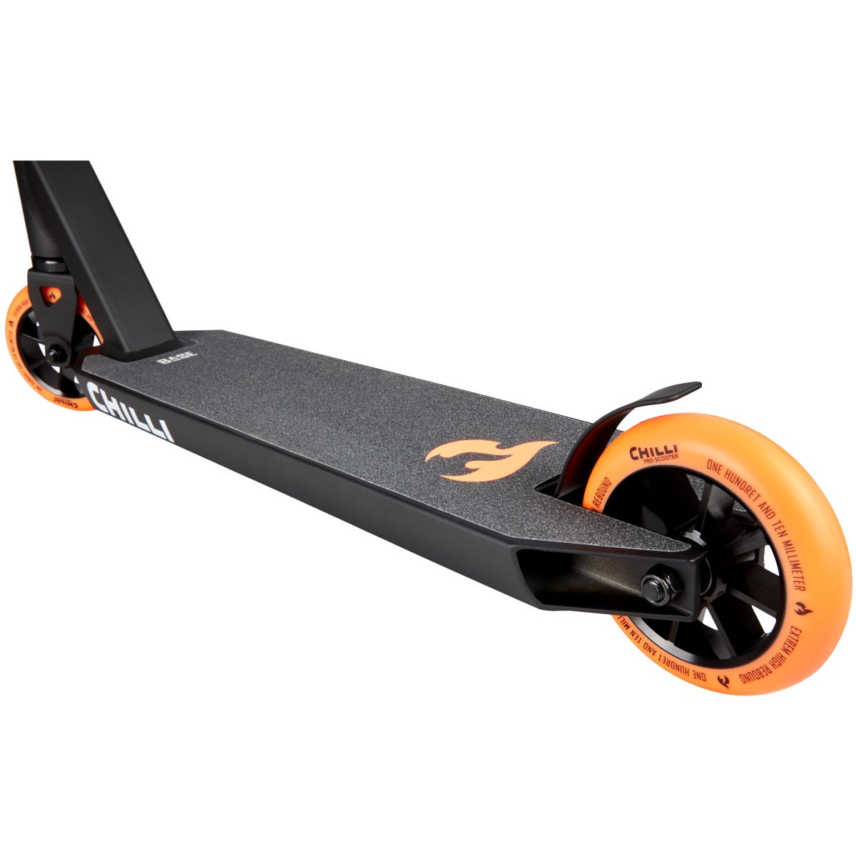 Chilli Base oranžová je kvalitní freestyle koloběžka pro začínající jezdce, kteří chtějí zvládnout základy freestylové jízdy ve skateparku nebo na rampě a nechtějí dělat kompromisy v kvalitě koloběžky.